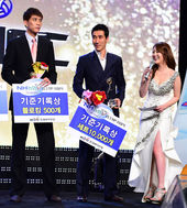 2014.04.08 16: 12남자 배구선수 옆에서 미소짓는 신아영 아나운서