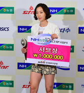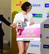 2014.04.08 14: 52레이스 미니스커트로 멋낸 한송이,'기준기록상 수상'