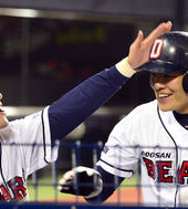 2014.04.08 20: 55민병헌,'득점 올리고 싱글벙글'