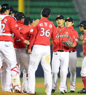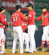 2014.04.09 22: 16정상호-박희수,'전날 패배의 아픔을 갚아줬다'