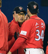 2014.04.09 22: 45염경엽,'정호야, 100홈런 축하해'