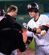2014.04.09 19: 49투런포 강민호,'유먼의 90도 인사에 깜짝'