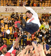 2014.04.10 22: 15헹가래 받는 유재학 감독,'짜릿한 우승의 기쁨'