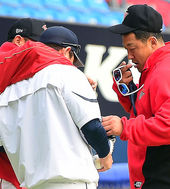 2014.04.10 16: 54나주환,'원석아 손가락 부상은 괜찮은거야?'