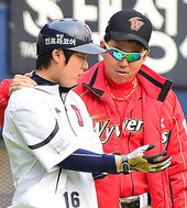 2014.04.10 16: 54나주환-김강민,'우리 나올땐 좋은 공 좀 줘'
