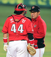 2014.04.11 20: 35이만수 감독,'인성아! 오늘은 끝까지 리드해'