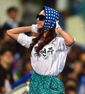 2014.04.11 20: 09몸빼 패션 삼성 치어리더,'닭다리 잡고 삐약삐약'