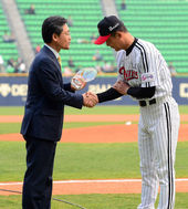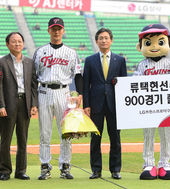 2014.04.11 19: 32'900경기 출장 기념패 받는 류택현'