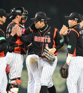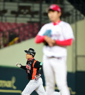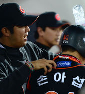 2014.04.11 22: 32장원준,'물병으로 손아섭 스리런포 축하'