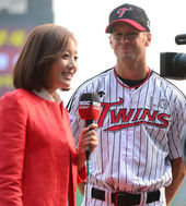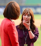2014.04.11 16: 46티포드,'미녀 아나운서 옆에서 반달 눈 웃음'