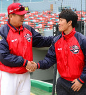 2014.04.11 15: 44선동렬 감독,'김병현, 챔피언스필드 입성 축하해'