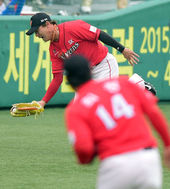 2014.04.12 17: 43호수비 박재상,'파울타구, 글러브 끝에 걸렸네'