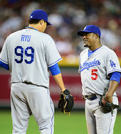2014.04.12 13: 34류현진,'유리베 형님, 빨리 퇴근시켜 줄게'