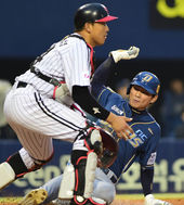 2014.04.12 19: 04김태군,'테임즈 수염 잡고 위험한 도발(?)'