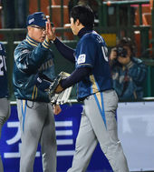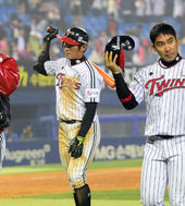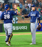 2014.04.15 22: 41손승락-허도환,'내일도 이기자고'
