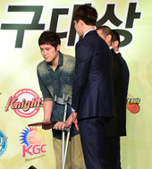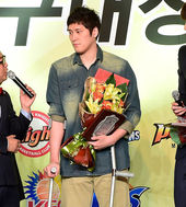 2014.04.16 12: 41함지훈,'목발짚고 시상대에'