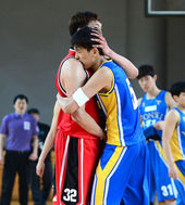 2014.04.17 15: 46고려대 이종현-연세대 최준용,'우정의 포옹'
