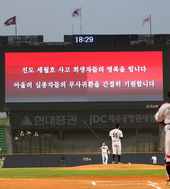잠실구장,'진도 세월호 사고 희생자들의 명복과 실종자들의 무사귀환을 기원'