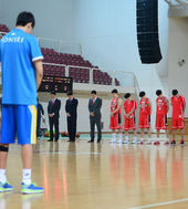 2014.04.17 14: 05세월호 침몰 사망자 추모 묵념하는 고려대-연세대 선수들