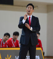 2014.04.17 14: 11선수들에게 지시하는 고려대 이민형 감독