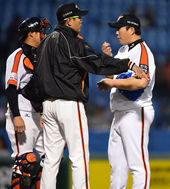 2014.04.18 19: 37정민철 코치,'창현아! 긴장풀고 가자고'
