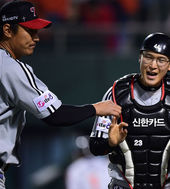 2014.04.19 20: 33도루저지 성공 문선재,'완벽한 포수 변신'