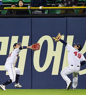 2014.04.19 20: 31정수빈-민병헌,'누가 잡아야 하나'