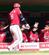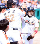 2014.04.20 14: 50역전 2타점 적시타 이용규,'김태균-정근우 축하 받으며'