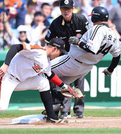 2014.04.20 14: 223루 도루 성공하는 멧 캠프