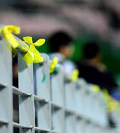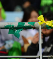 2014.04.22 21: 12축구장도 세월호 희생자 애도 물결,'노란리본이 난간에'