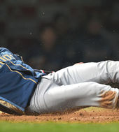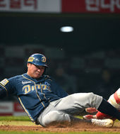 2014.04.23 19: 52홈태그아웃 김태군,'아무리 발을 뻗어보지만'