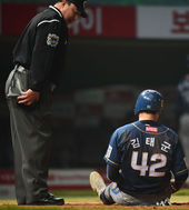 2014.04.23 19: 53홈태그아웃 김태군,'너무 억울해요'