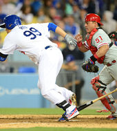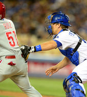 2014.04.23 14: 46류현진,'유리베! 홈 송구 좋았어!'