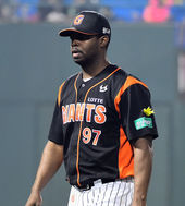 2014.04.23 20: 35롯데 선발 유먼,'팔뚝에 무사귀환 노란리본 달고'