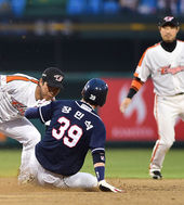 2014.04.24 19: 282루 도루 실패하는 두산 장민석