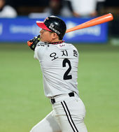 1타점 적시타 날리는 오재원,'쉽게 질 수 없어'