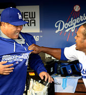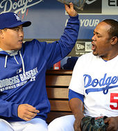 2014.04.25 11: 26류현진-유리베, '우리 이러고 놀아요'
