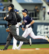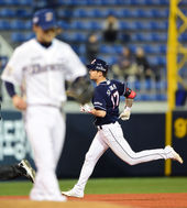2014.04.25 20: 59오재원,'홈런 치고 전력 질주'