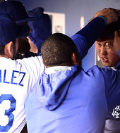 2014.04.27 10: 26류현진, '유리베, 천장에 머리...'