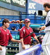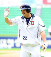 2014.04.30 16: 17미소지으며 인사하는 홍성흔,'넥센 후배들이 반가워'