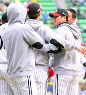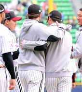 2014.05.04 17: 14첫 승리 축하받는 우규민,'첫 승리가 이렇게 힘들줄이야'