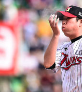 2014.05.04 15: 44노히트 기록하던 우규민,'아! 드디어 한방 맞았네'