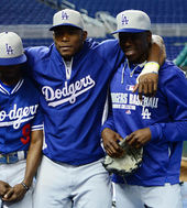 2014.05.04 06: 59뒤엉켜 장난치는 류현진-푸이그
