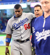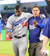 2014.05.05 05: 31푸이그,'펜스 충돌 후 부축 받으며 덕아웃으로'