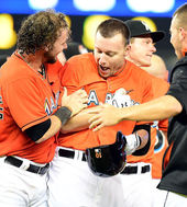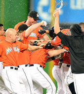 2014.05.05 05: 36베이커의 끝내기 안타에 환호하는 MIA