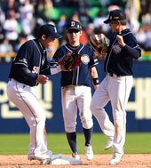 2014.05.05 17: 24김현수-민병헌,'저희 4타점 합작했어요'