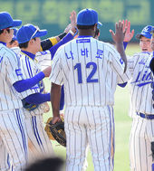 2014.05.05 17: 24환호하는 삼성,'위닝시리즈 달성'