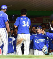 2014.05.06 17: 10기뻐하는 삼성,'승리가 보인다'