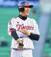 2014.05.07 19: 15환하게 미소짓는 이병규,'타구가 절묘한 위치에 떨어졌어~'