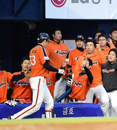 2014.05.07 19: 21한화 더그아웃,'김회성, 호쾌한 투런포였어~'